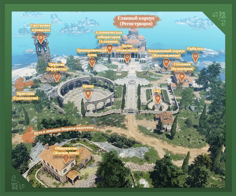 Для того чтобы вы с легкостью ориентировались в Академии Оливии, ниже представлена карта с названием корпусов Академии Оливии.