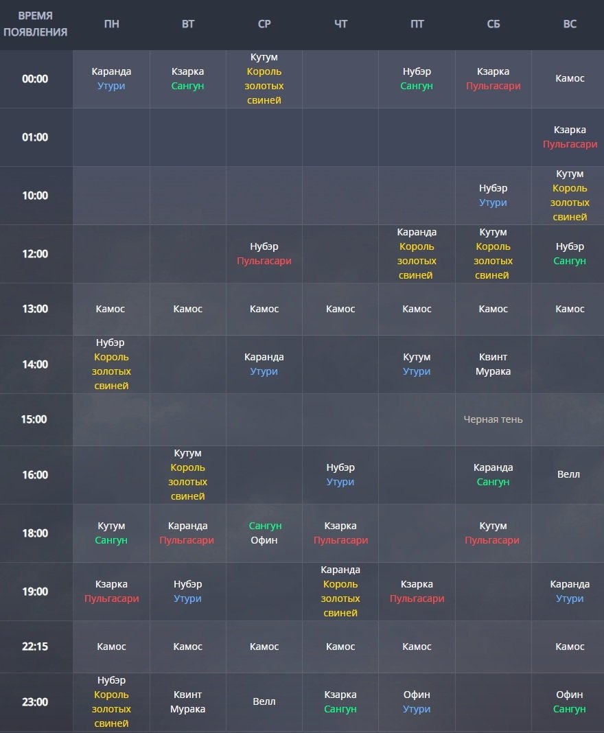 Время появления боссов указано по-Мск