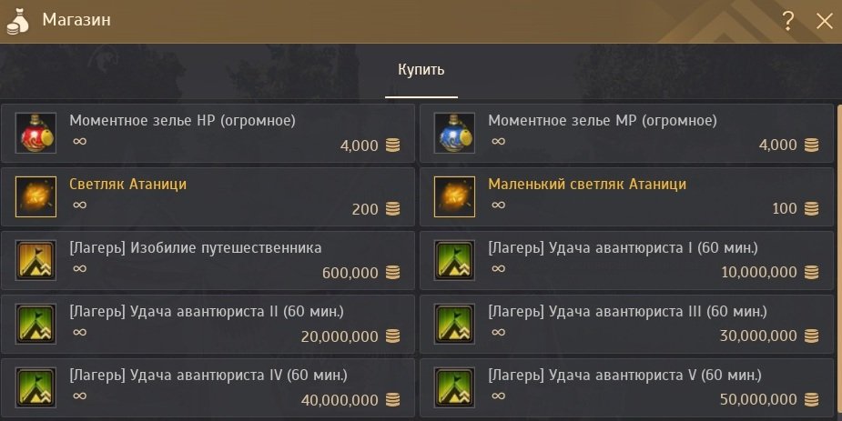 Кроме банок, светляков Атаници и обмена золотых слитков, в магазине можно приобрести баффы: