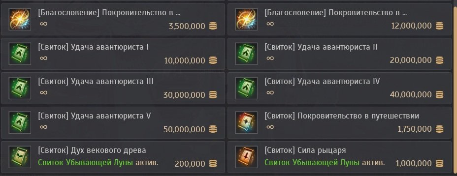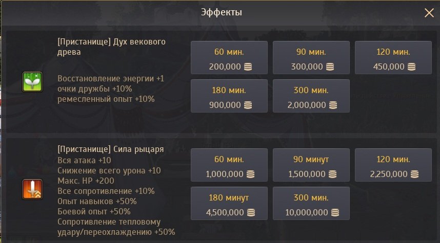 Кроме того вы можете приобрести баффы или свитки с баффом, которые дублирцют бафф пристанища или церкви.
