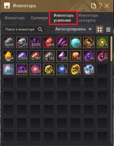 16 октября 2025 года в бдо добавлен инвентарь усиления. Теперь полученные различные материалы для усиления будут автоматически помещаться в этот инвентарь.