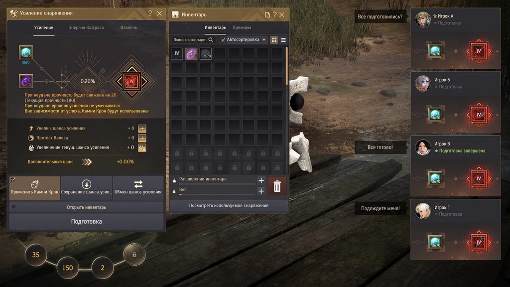 Можно объединиться с игроками, у которых такой же уровень усиления снаряжения (например, с игроками, которые пытаются усилить оружие с IV до V уровня), и усилить вместе.