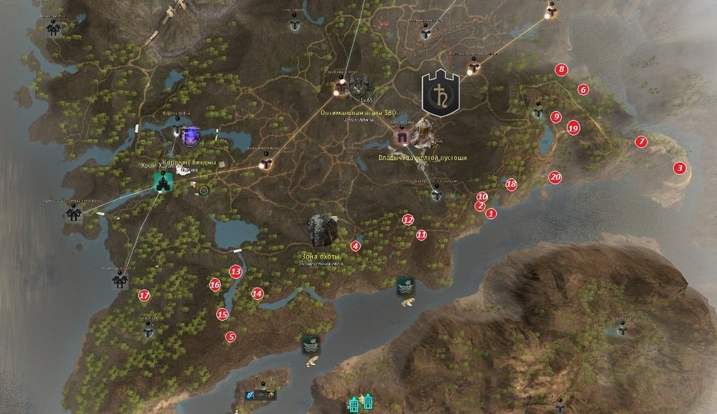 | Горы Литован | 1, 2, 3, 4, 6, 7, 8, 9, 10, 11, 12, 18, 19, 20 |