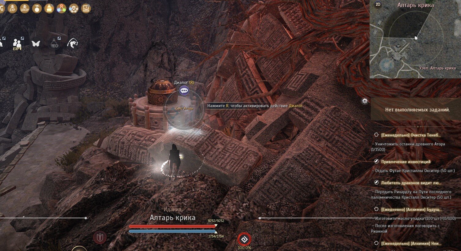 Награда: опыт влияния (100), Кусок кристалла с древних руин, [Знание] Внутри Атора