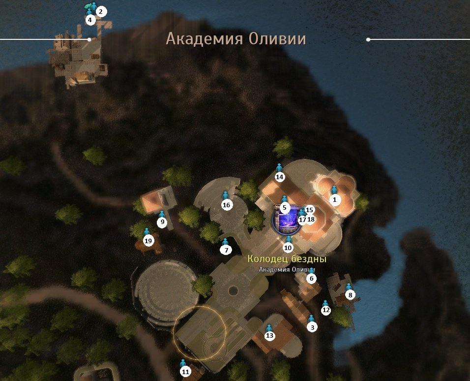 Все НПС находятся на Территории Академии Оливии