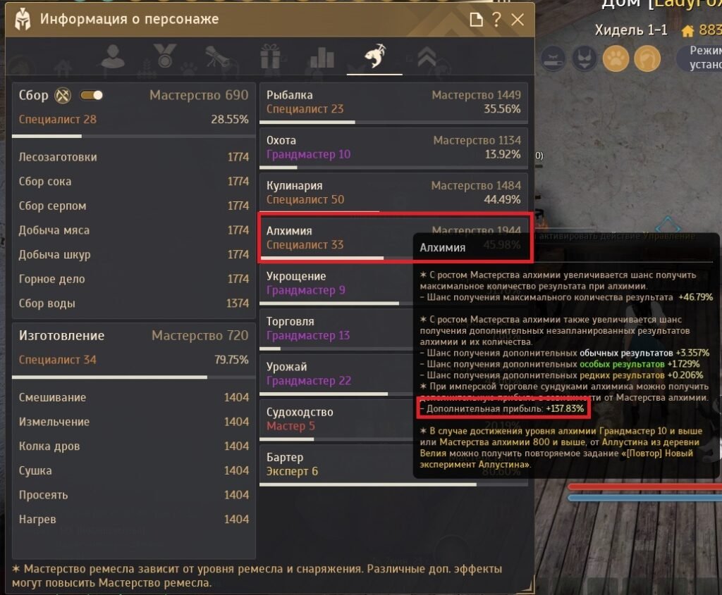 При сдаче сундуков вы можете получить дополнительную прибыль, на которую влияет ваше мастерство алхимии или мастерство кулинарии, соответственно.