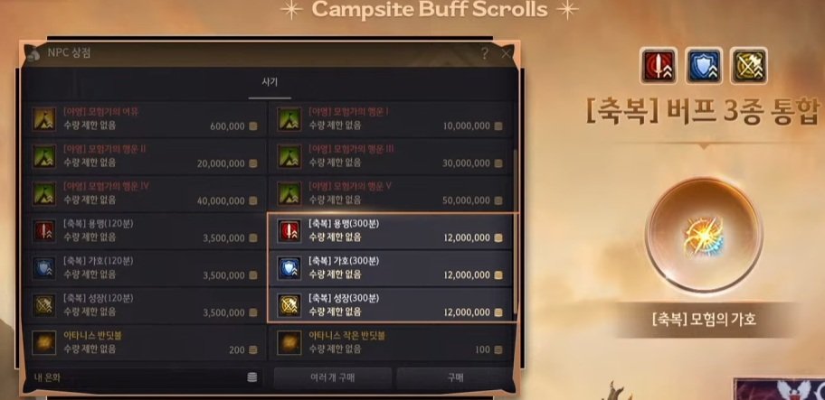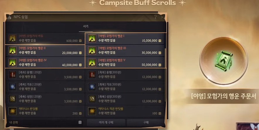 Баффы лагеря на увеличение шанса выпадения предметов, можно будет также приобрести в виде свитков.