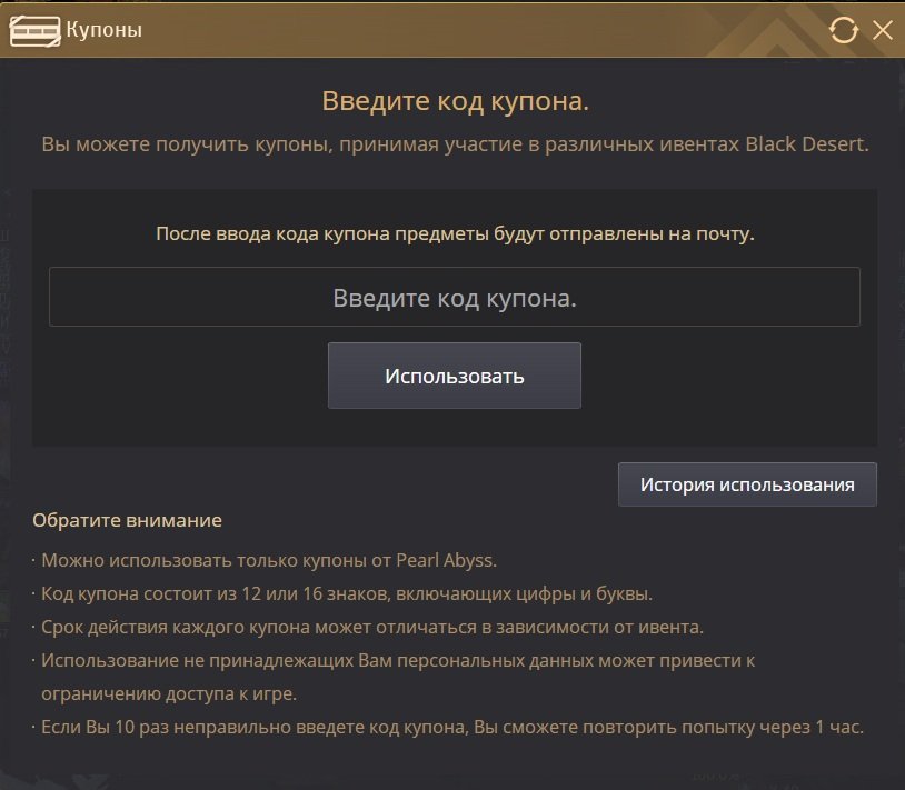 Для того чтобы активировать купон Black Desert сделайте следующее:
